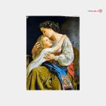این تابلو فرش دستباف با نقشه مهر مادری، تصویری لطیف و پرمعنا از مادر و کودک را به تصویر میکشد؛ سر کودک آرام در آغوش مادر قرار گرفته و حس امنیت، محبت و عشق بیقید و شرط را منتقل میکند. این اثر هنری با ابعاد 80 در 50 سانتیمتر و چله ابریشم و تلفیقی از ظرافت و دوام و با تراکم بافت 50 رج، جزئیات دقیق صورتها و خطوط ظریف لباسها را به بهترین شکل ممکن نشان می دهد. رنگبندی استادانه این تابلو فرش شامل سفید، آبی و خردلی است که هر یک حس آرامش، لطافت و عمق احساس را به تصویر اضافه میکند. این هارمونی رنگها باعث شده تابلو فرش به یک اثر هنری زیبا و به نمادی از عشق و مهربانی تبدیل شود.